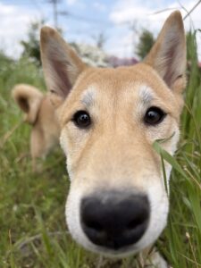縄文柴犬特有のスラリとした脚と、キツネさんのような凛々しい顔立ちで監視されていると、